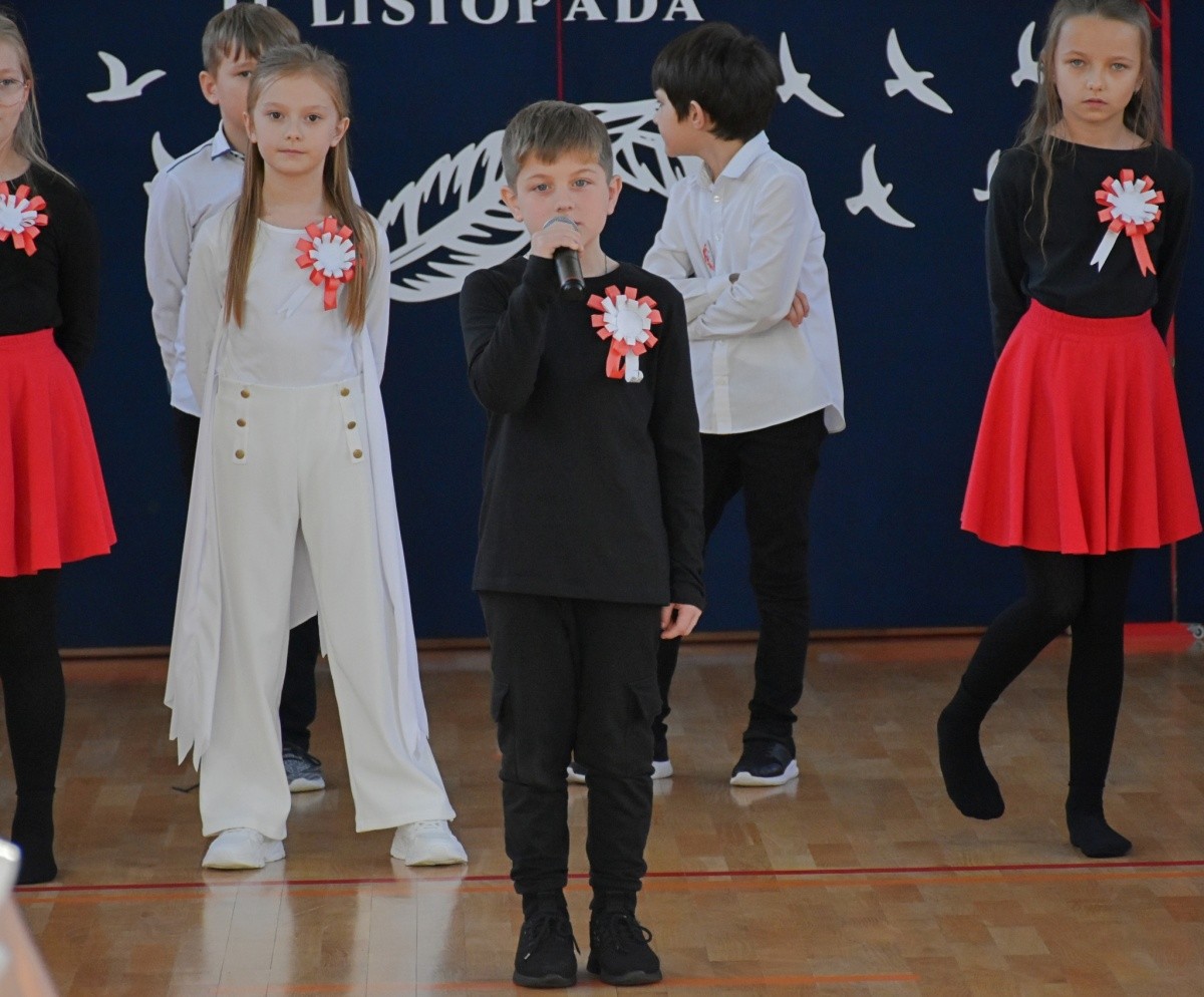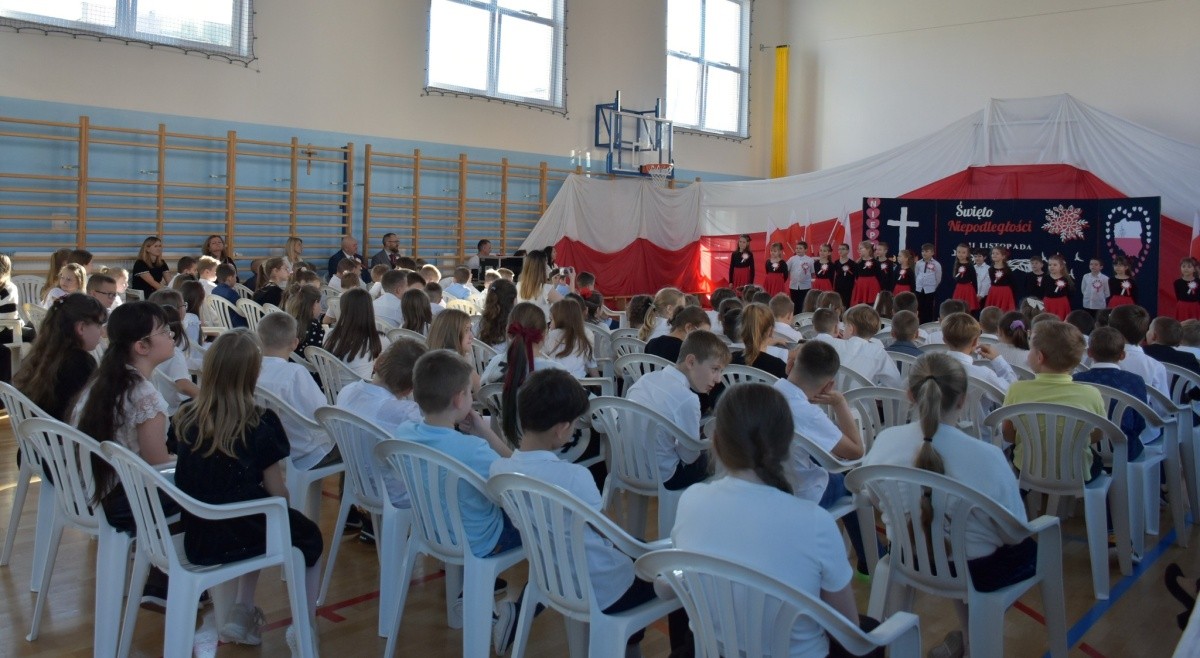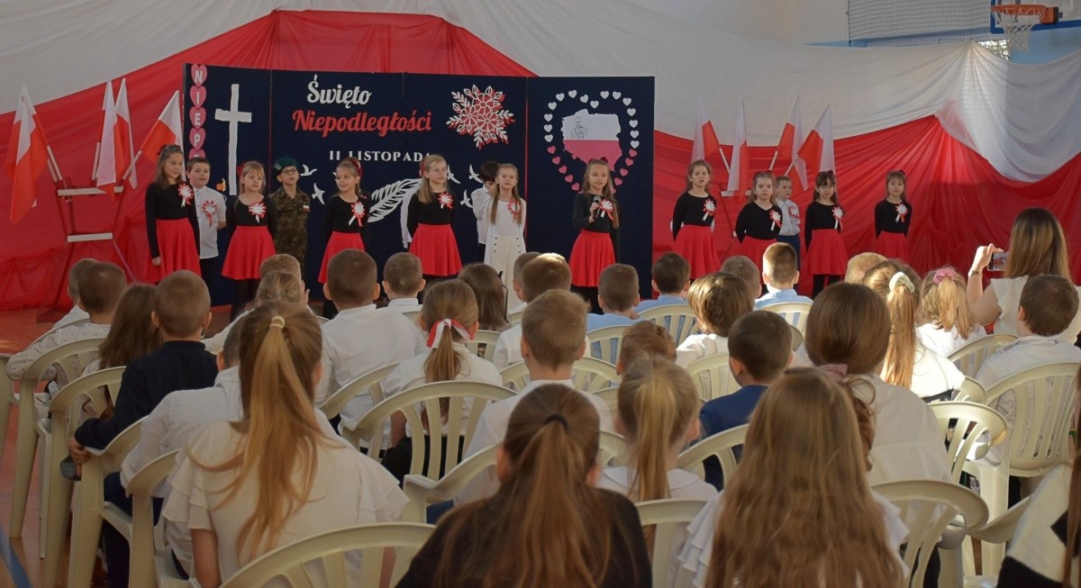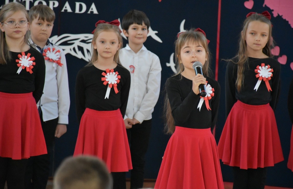 "Niepodległość znaczy wolność, słowa najpiękniejsze" - rozbrzmiewało w piątek 7.11 w sali gimnastycznej Szkoły Podstawowej nr 2 przy ul. Chmielowskiego.