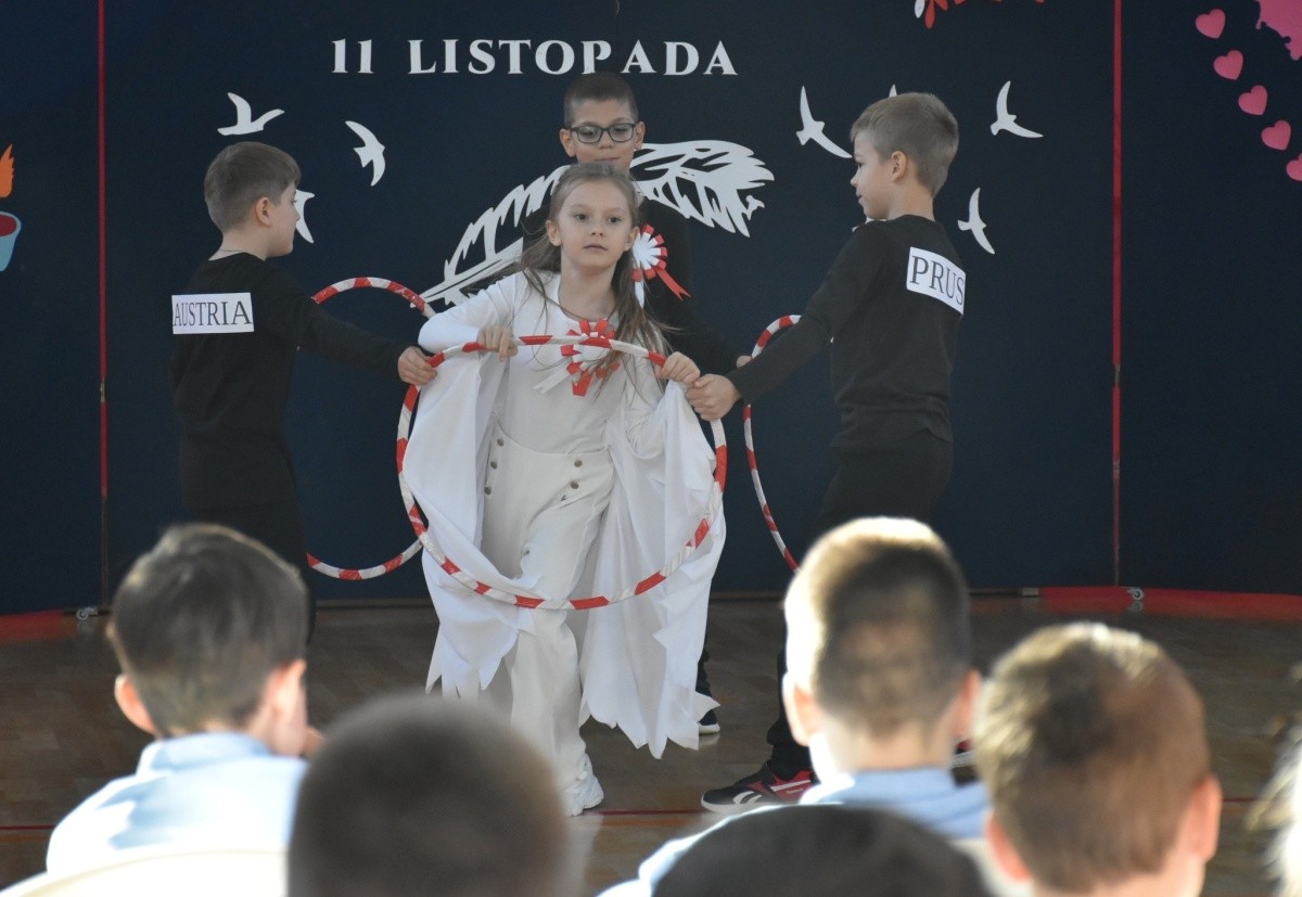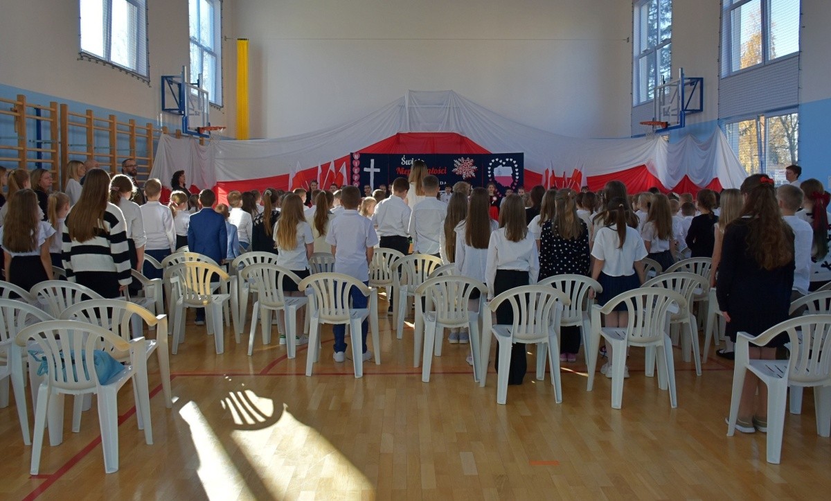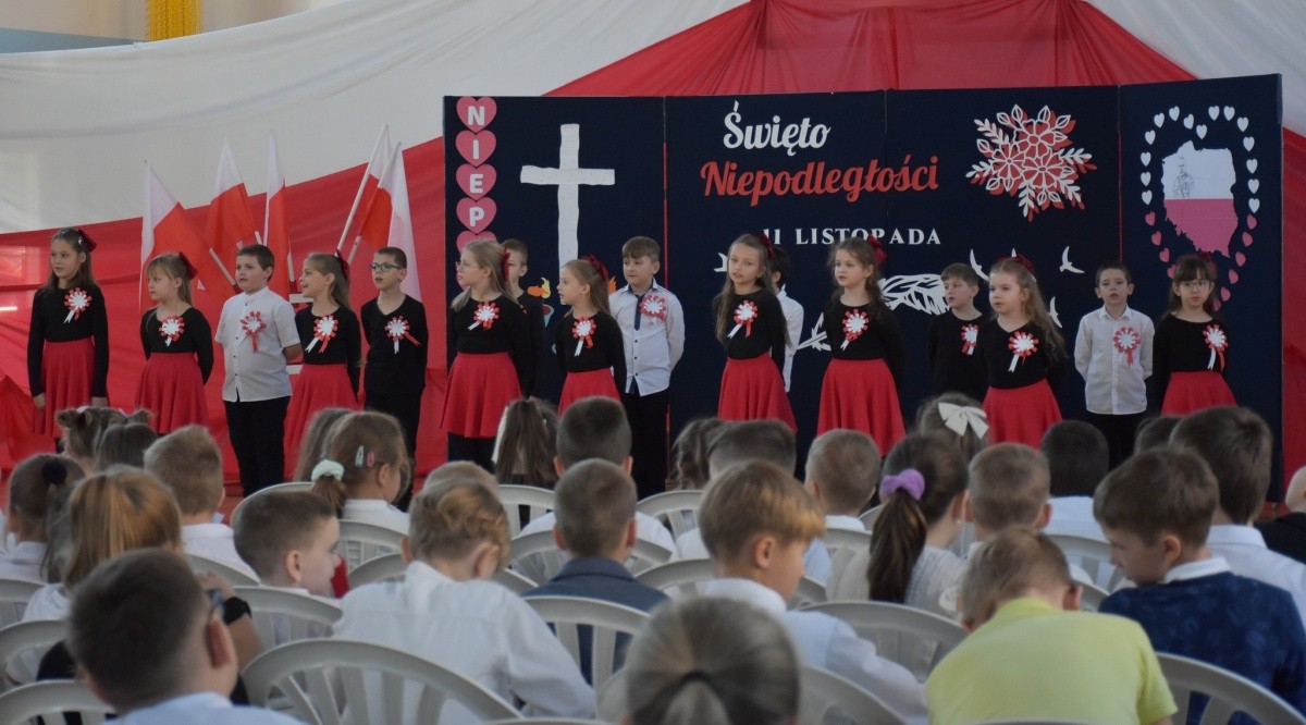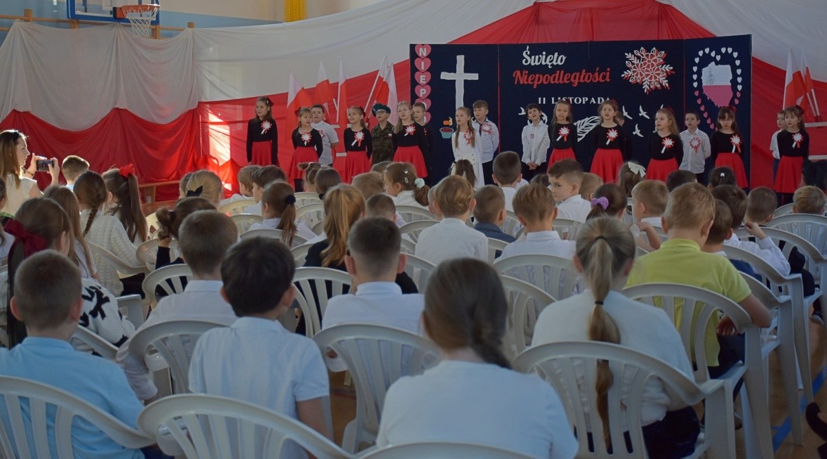 "Niepodległość znaczy wolność, słowa najpiękniejsze" - rozbrzmiewało w piątek 7.11 w sali gimnastycznej Szkoły Podstawowej nr 2 przy ul. Chmielowskiego.