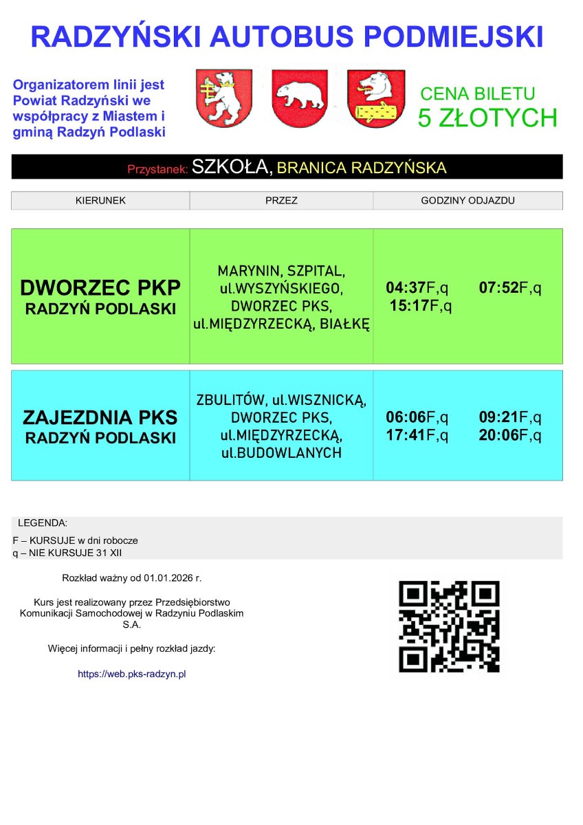 Nowa linia na trasie: Branica Radzyńska • Zbulitów • Szpital • Centrum • Dworzec PKS • Białka • Dworzec PKP ma rozkład dopasowany do odjazdu szynobusów: