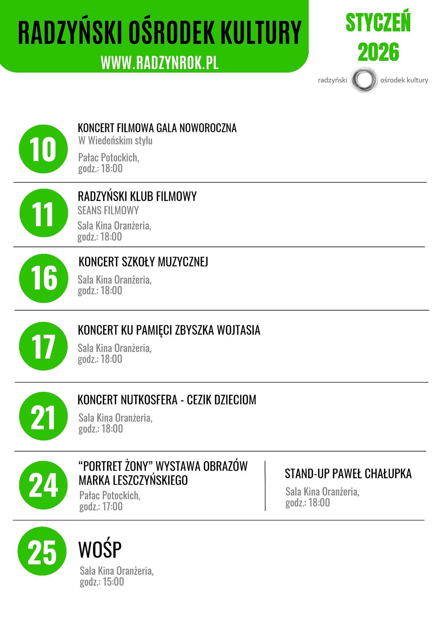 Muzyka, filmy, obrazy, stand-up - Radzyński Ośrodek Kultury na styczeń przygotował różnorodną ofertę wydarzeń dla każdego. Zapraszamy do zapoznania się!