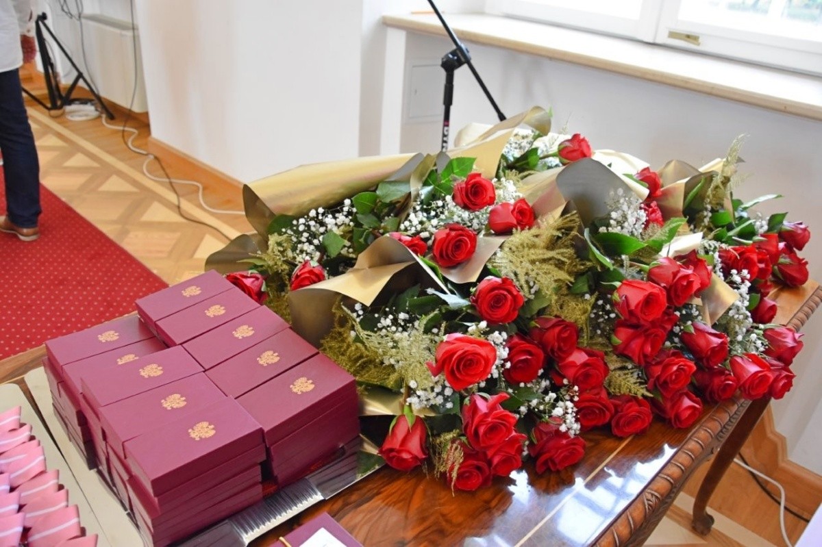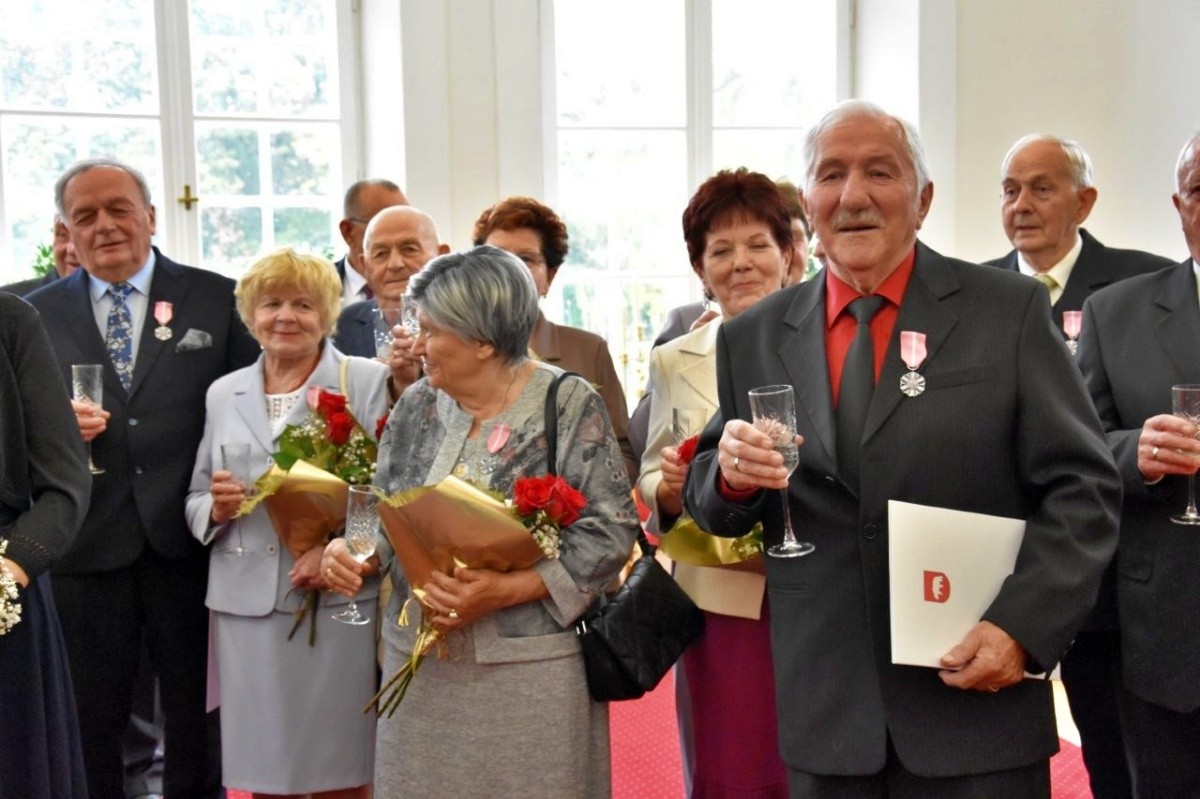 Uroczystość rozpoczęła się od przemówień, po których jubilaci obchodzący w ubiegłym roku półwiecze pożycia małżeńskiego otrzymali Medale za Długoletnie Pożycie Małżeńskie, przyznane przez Prezydenta Rzeczypospolitej Polskiej.