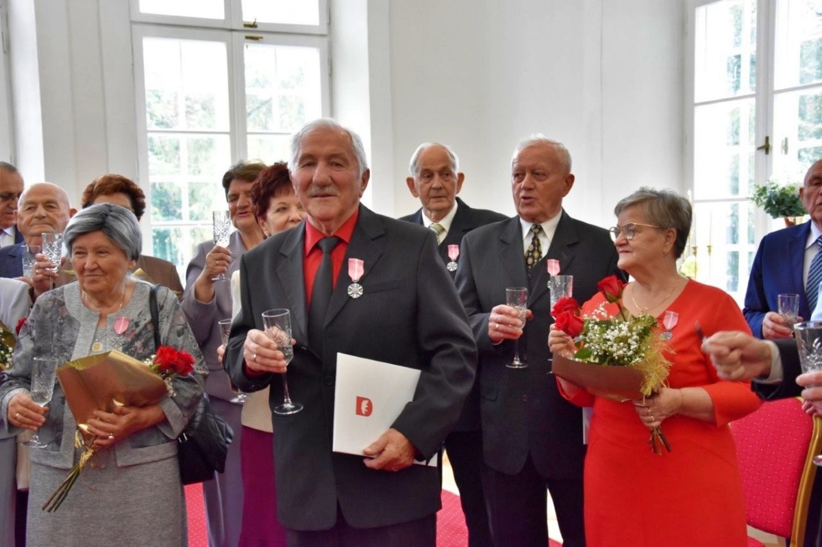 Złote Gody w Pałacu Potockich50 lat wspólnego życia to nie tylko liczba. To historia pisana każdego dnia przez dwie osoby, które postanowiły iść przez życie ramię w ramię, dając dowód siły miłości, wzajemnego szacunku i wytrwałości. 12 października w Pałacu Potockich odbyła się uroczystość Złotych Godów. Gospodarzami wydarzenia byli Burmistrz Jakub Jakubowski oraz Wójt Daniel Grochowski.