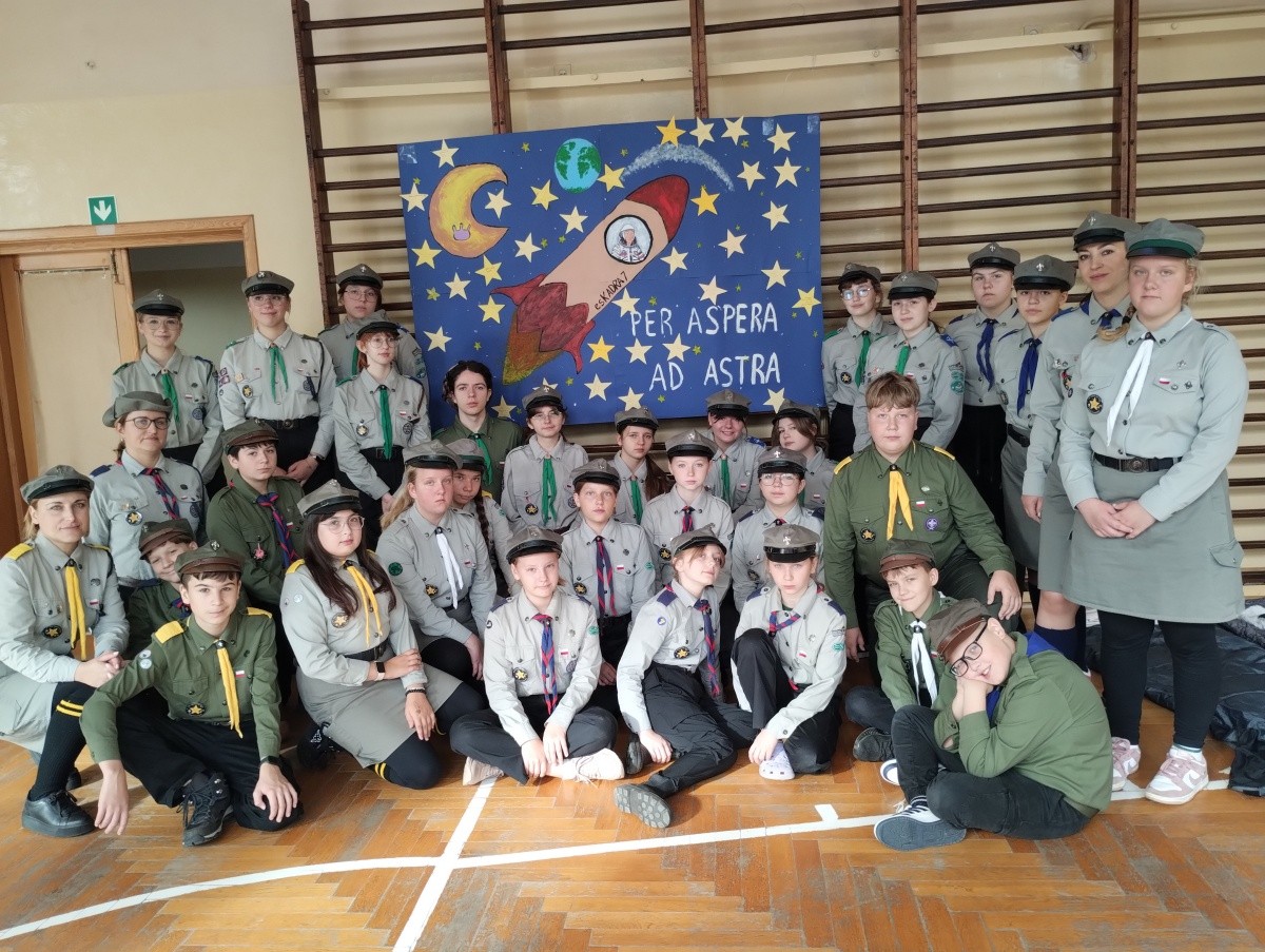 Biwak rozpoczęło ognisko obrzędowe, podczas którego na przykładzie Sławosza Uznańskiego – Wiśniewskiego harcerze rozmawiali jak dzięki systematycznej nauce, wysiłkom, staraniom, ambicji i determinacji dotrzeć aż do gwiazd.