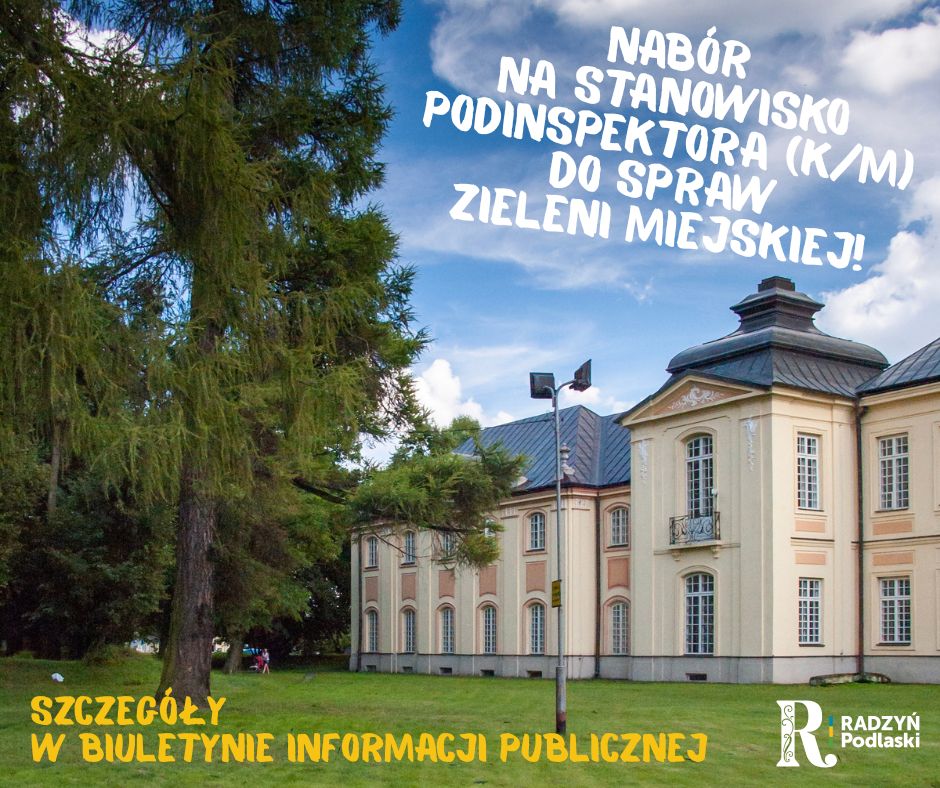Burmistrz Miasta Radzyń Podlaski ogłasza nabór na wolne stanowisko urzędnicze - Podinspektor (K/M) w Wydziale Zarządzania Mieniem Komunalnym (1 etat). Szersze informacje: