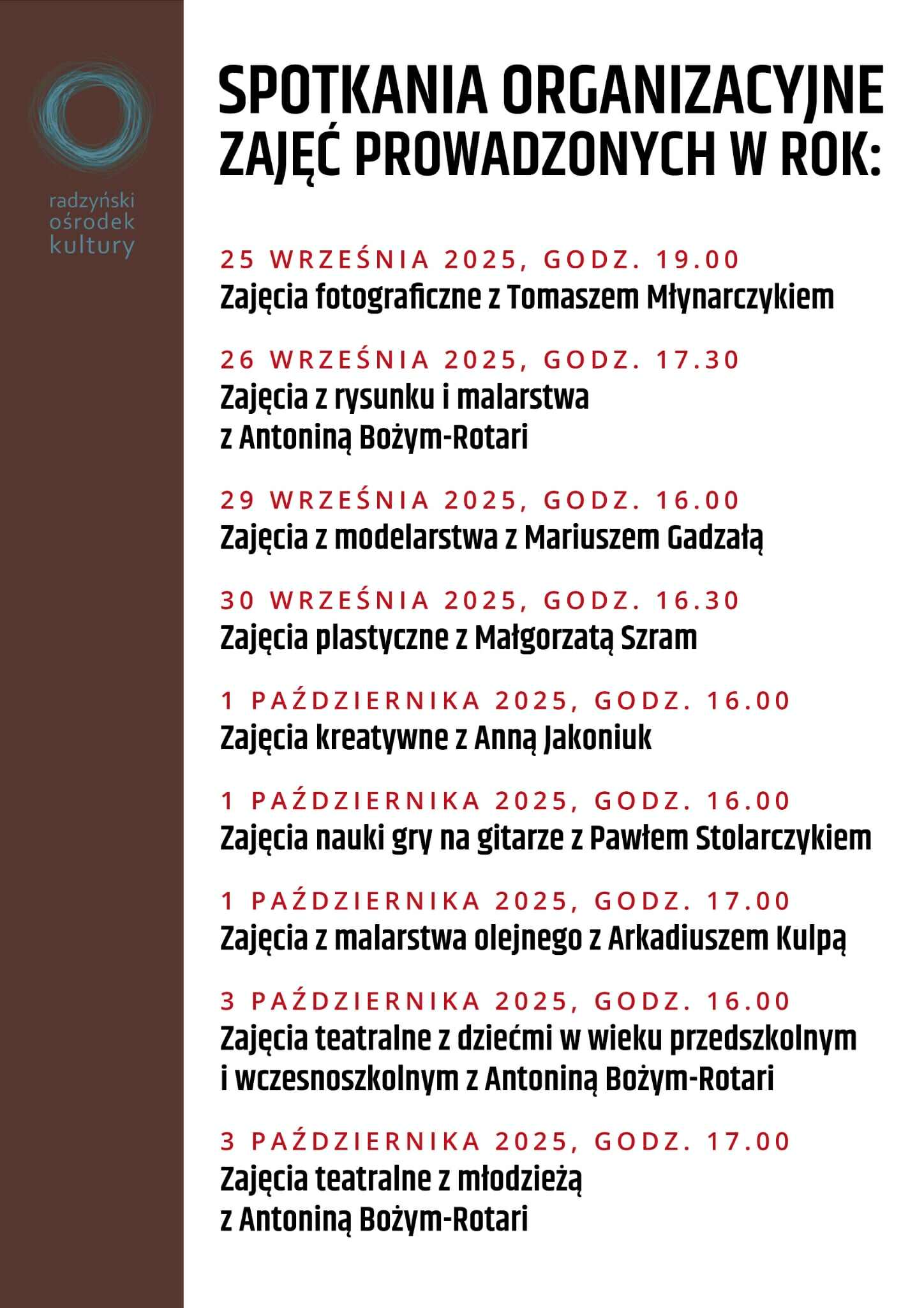 Od października Radzyński Ośrodek Kultury powraca z szerokim wachlarzem zajęć artystycznych adresowanych do dzieci i dorosłych. W ofercie znajdują się: