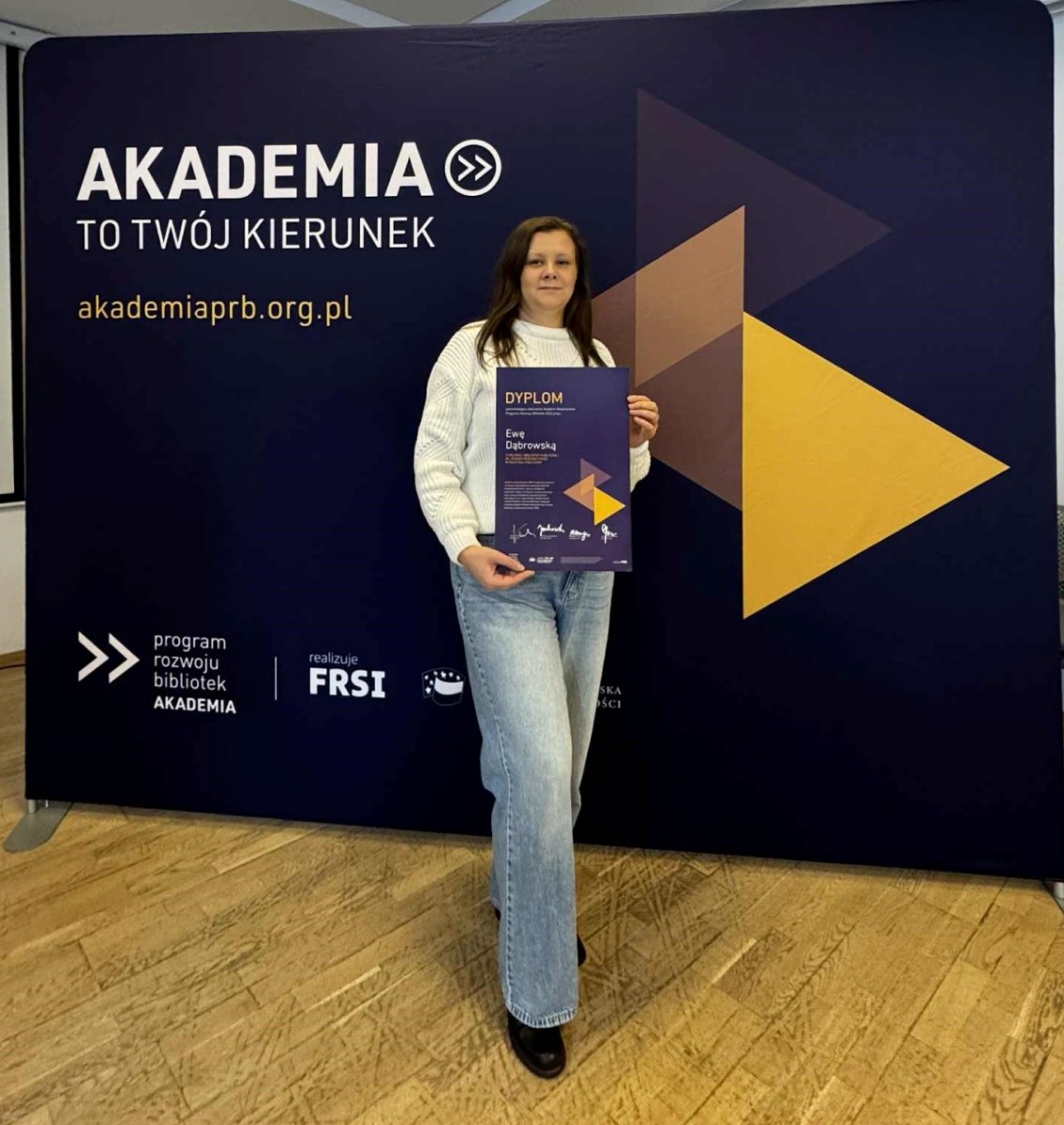 Ewa Dąbrowska ma za sobą dziewięć intensywnych miesięcy nauki i rozwoju. Razem z uczestnikami z całej Polski przyglądała się temu, jak dziś wygląda praca bibliotekarza i jak odnaleźć się w świecie, który zmienia się coraz szybciej. Udział w Akademii przyniósł też bardzo konkretny efekt. Dyrektor pozyskała 3 000 zł na szkoleniowy wyjazd studyjny dla bibliotekarzy z powiatu radzyńskiego.