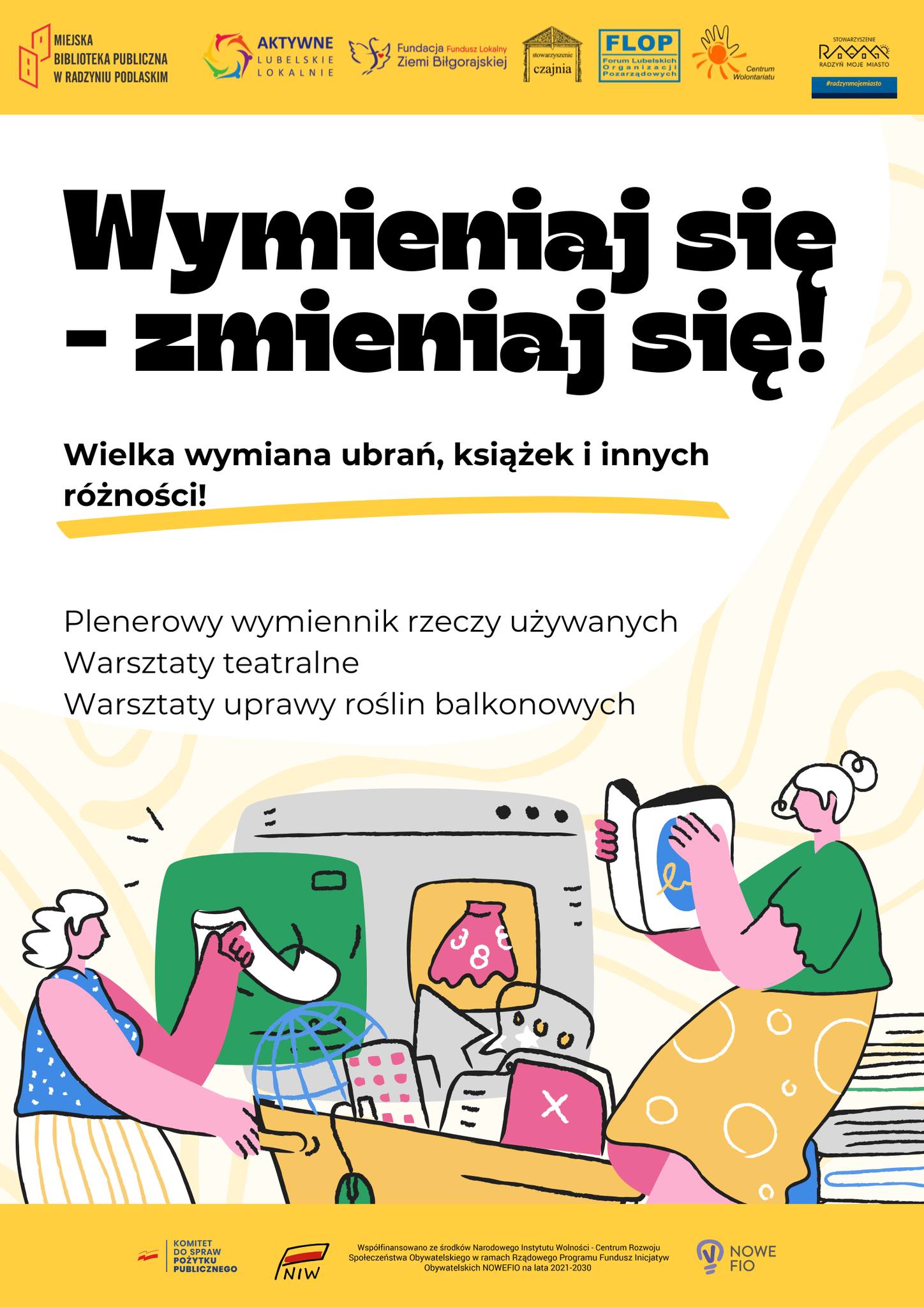 Dzięki inicjatywie grupy pracowników Miejskiej Biblioteki Publicznej w sercu osiedla Zabielska, przy filii Biblioteki w Radzyniu Podlaskim powstanie wymiennik – zadaszone, estetyczne miejsce do bezpłatnej wymiany rzeczy: ubrań, książek, zabawek i innych niepotrzebnych już przedmiotów.