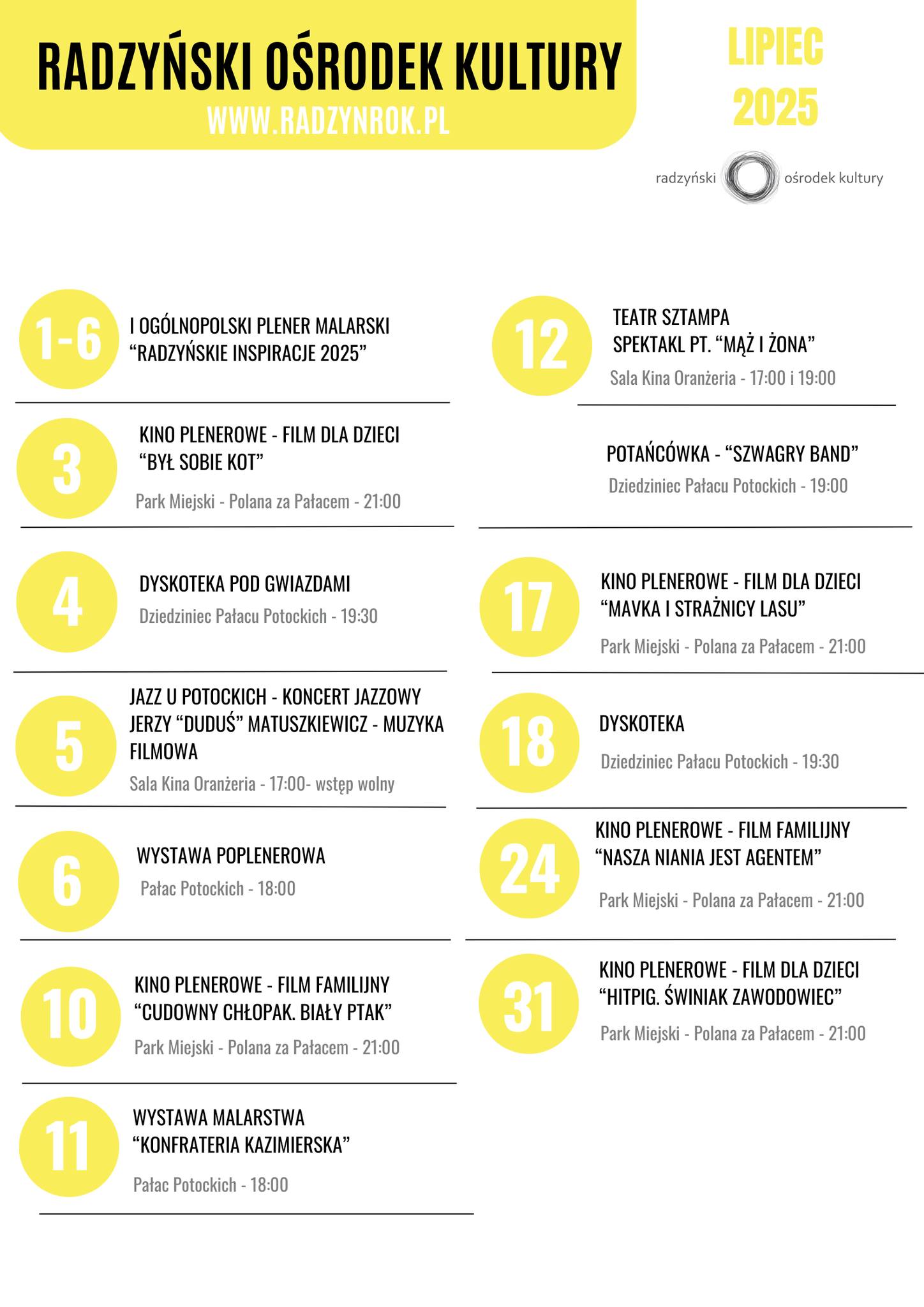 Zapraszamy do poznania harmonogramu wydarzeń Radzyńskiego Ośrodka Kultury na lipiec 2025!