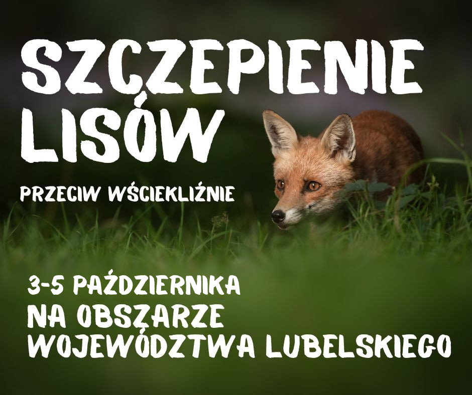 Lubelski Wojewódzki Lekarz Weterynarii informuje, że w dniach 3-5 października na terenie województwa lubelskiego zostanie przeprowadzona jesienna akcja szczepień lisów przeciwko wściekliźnie.