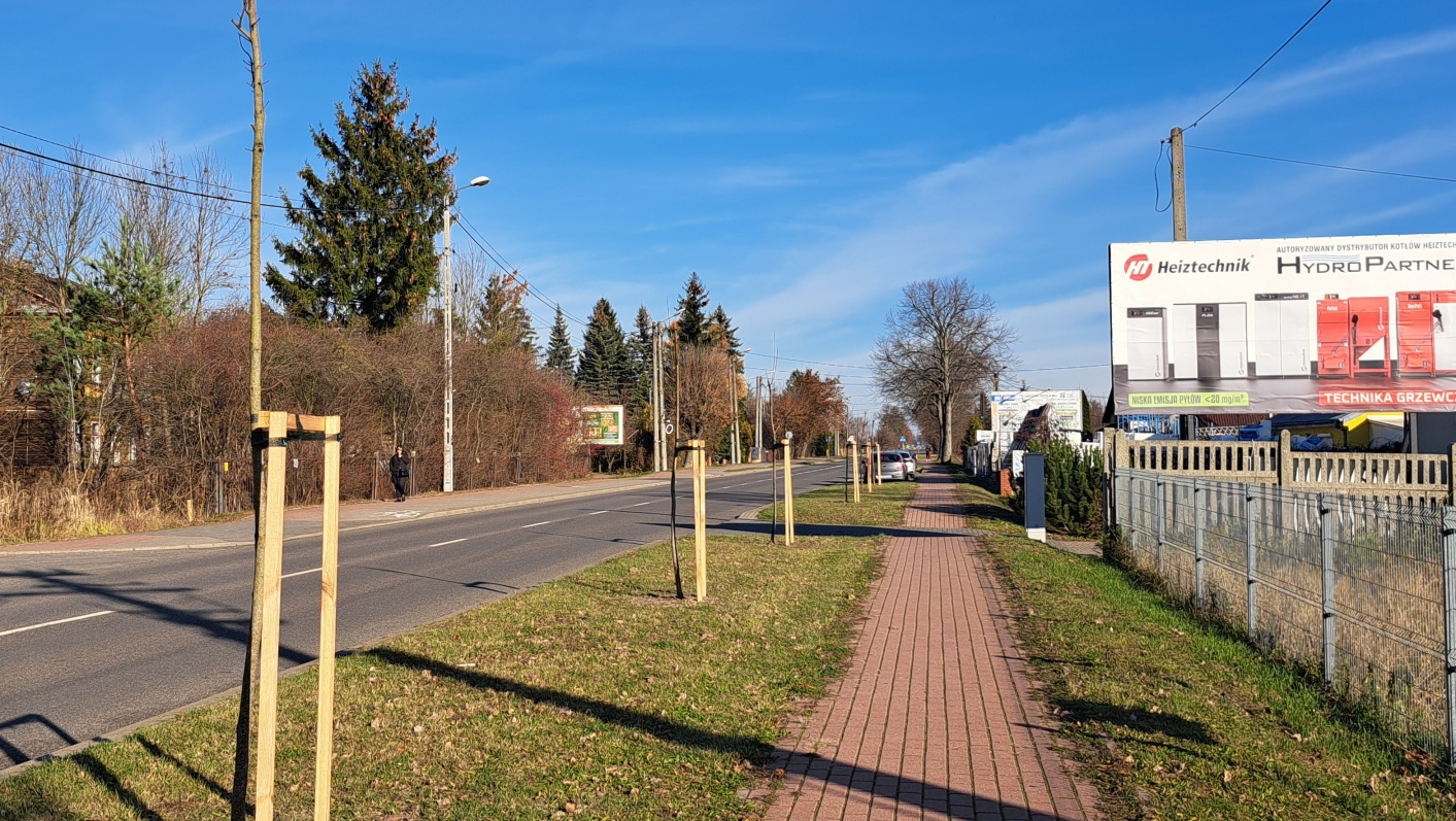 W ubiegłym miesiącu w pasie zieleni oddzielającym chodnik od jezdni przy ulicy Międzyrzeckiej posadzono nowe drzewa, w zamian za drzewa wycięte w 2024 r. przy Stadionie Miejskim, które były spróchniałe i obumarłe.