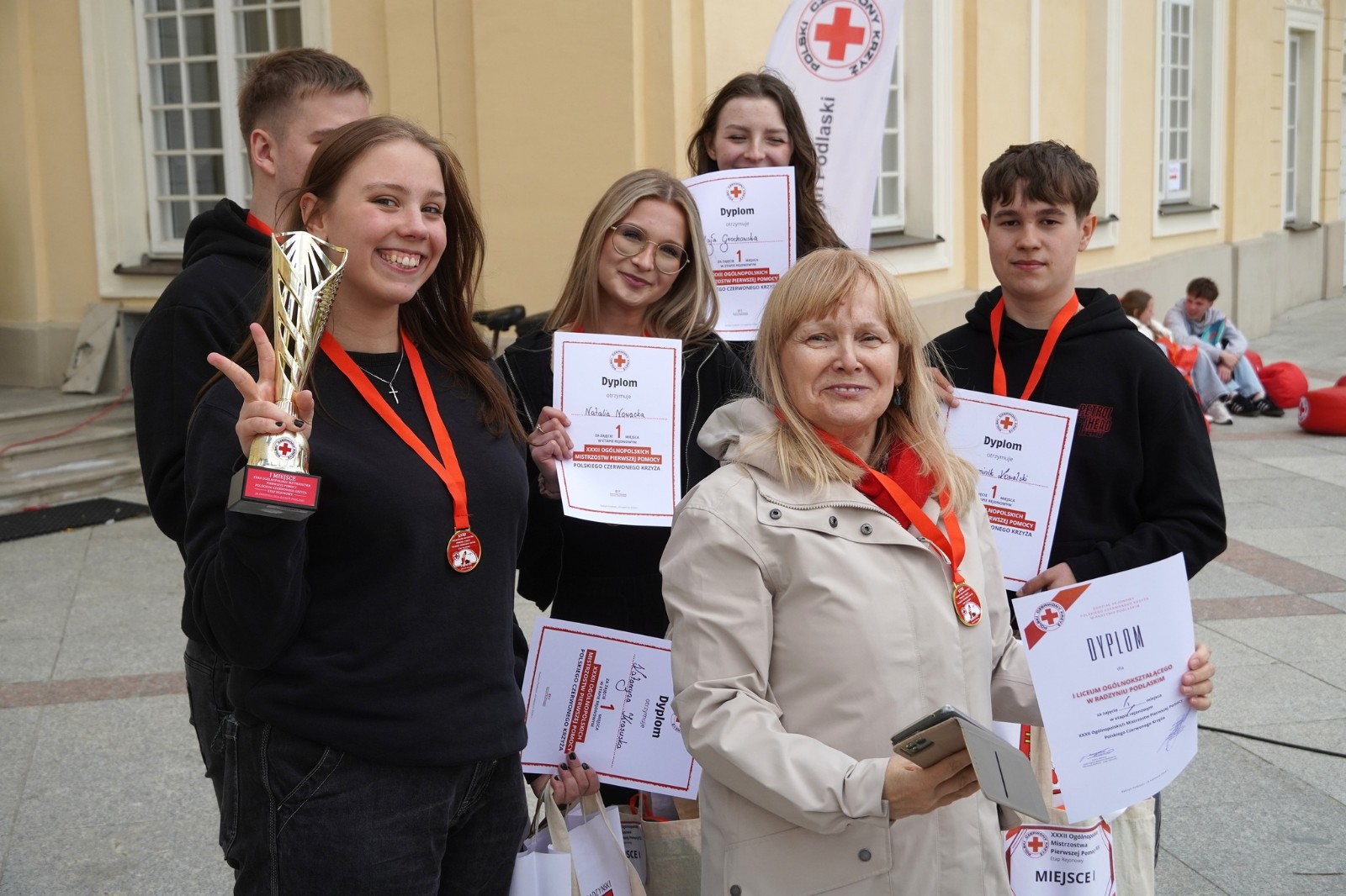 W poniedziałek 20 kwietnia dziedziniec pałacowy zamienił się w centrum zmagań ratowniczych XXXII Ogólnopolskich Mistrzostw Pierwszej Pomocy Polskiego Czerwonego Krzyża, podczas których uczniowie szkół ponadpodstawowych sprawdzali swoje umiejętności w wymagających i bardzo realistycznych scenach.Liczyła się wiedza, szybka reakcja i opanowanie, czyli dokładnie to, co w prawdziwych sytuacjach ratuje życie.