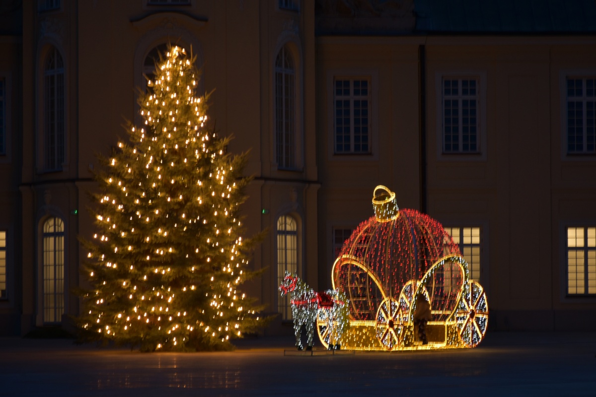 O 15.00 na dziedzińcu Pałacu Potockich rozbłysła choinka i karoca.